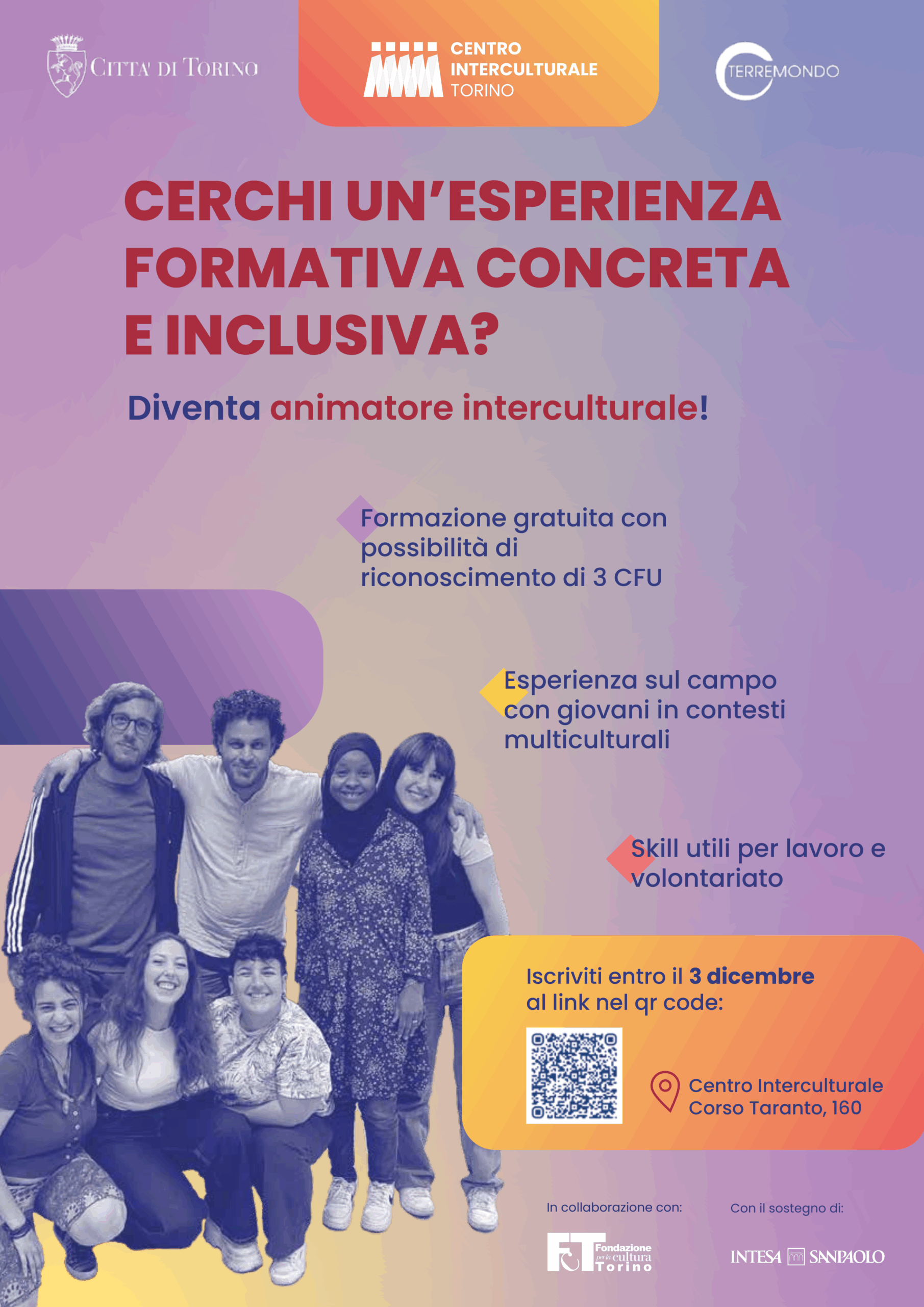 Parte il nuovo percorso formativo gratuito del Centro Interculturale della Città di Torino, in collaborazione con la cooperativa Terremondo: un’occasione per crescere, mettersi in gioco e imparare a lavorare con ragazzi e adolescenti in contesti multiculturali.