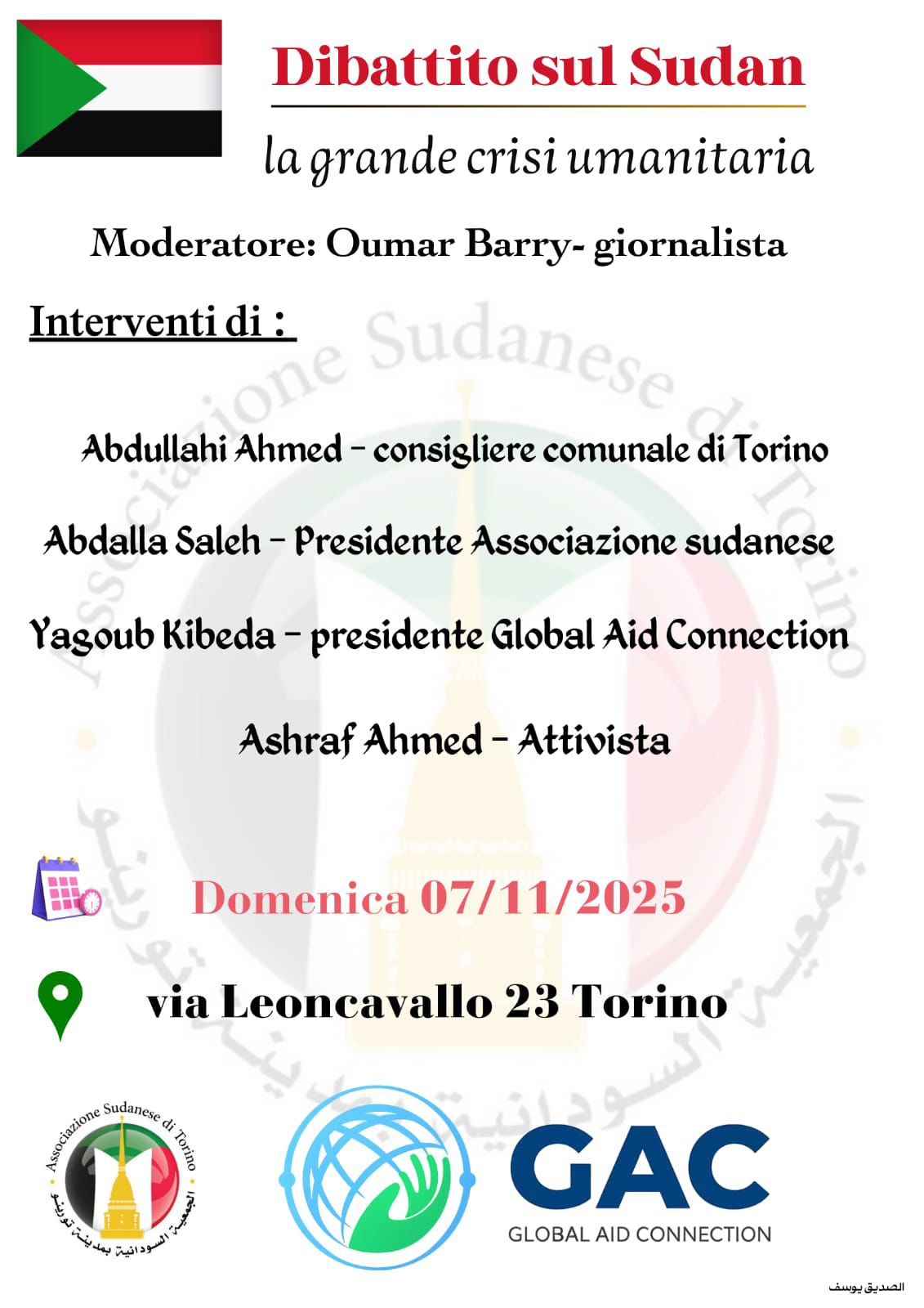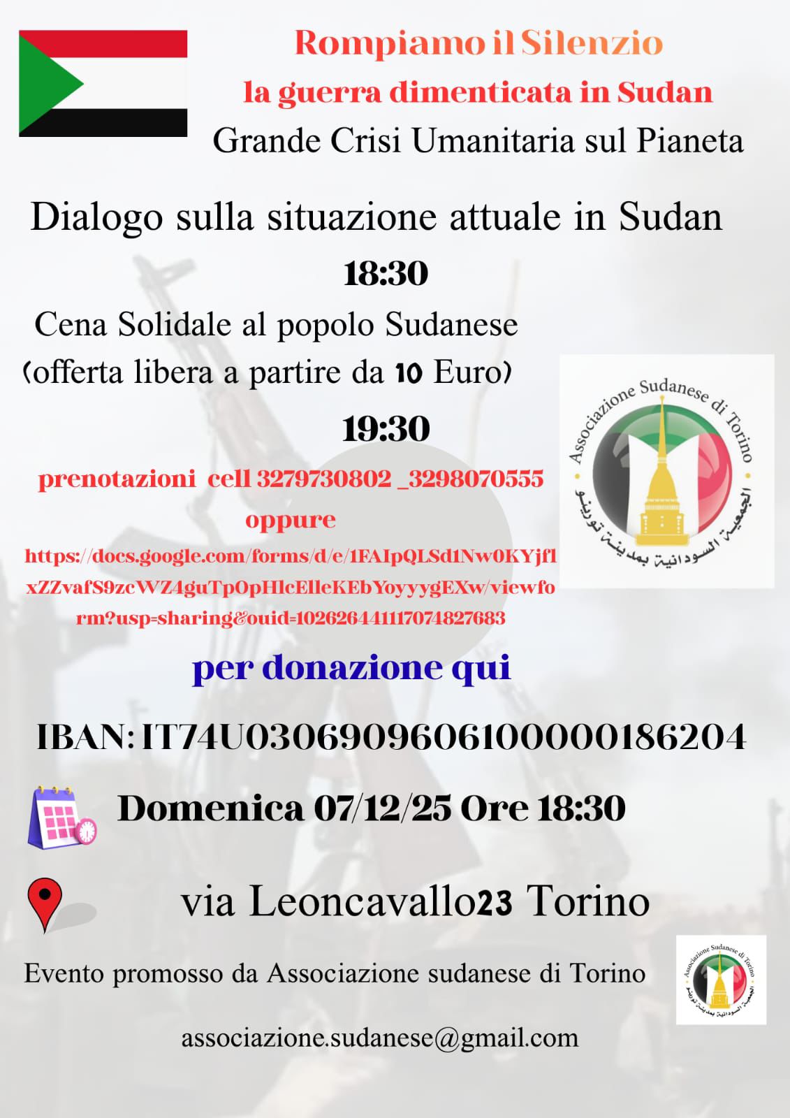 Panafricando-APS, informa e invita i membri delle comunità africane di Torino all’evento organizzato dall’Associazione degli Sudanesi di Torino.